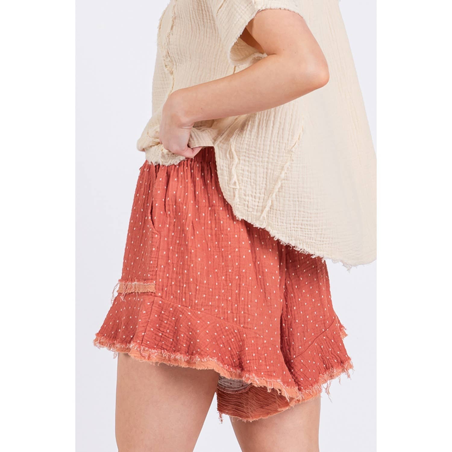 THESE SHORTS ARE CHARMING AND PLAYFUL PIECE WITH A TEXTURED DESIGN AND BOHEMIAN FLAIR, PERFECT FOR WARM WEATHER AND CASUAL OUTINGS.