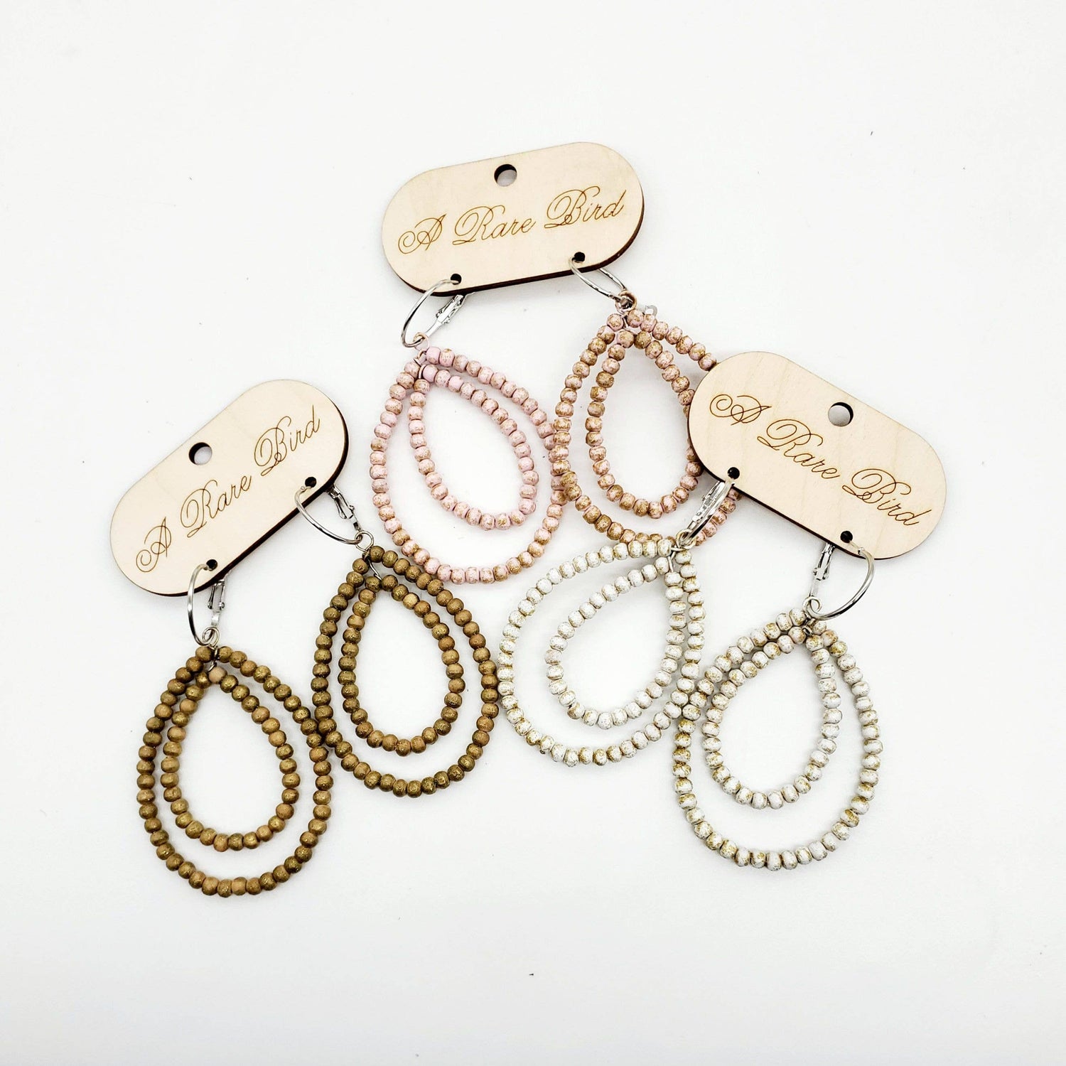 Gorgeous, hand-dyed gold teakwood beads make up these 2 1/2-inch earrings with 1/2-inch hoops. A top seller among our Retailers! Available in a matching necklace.