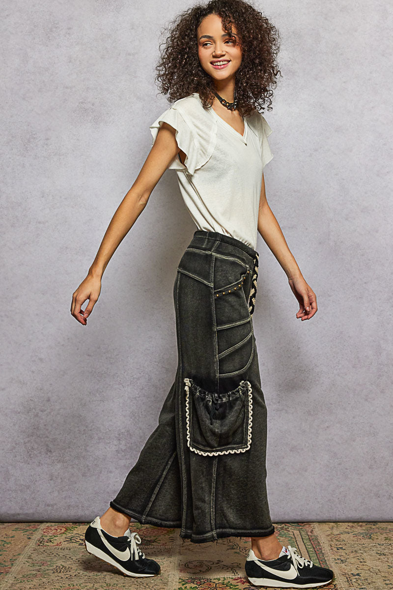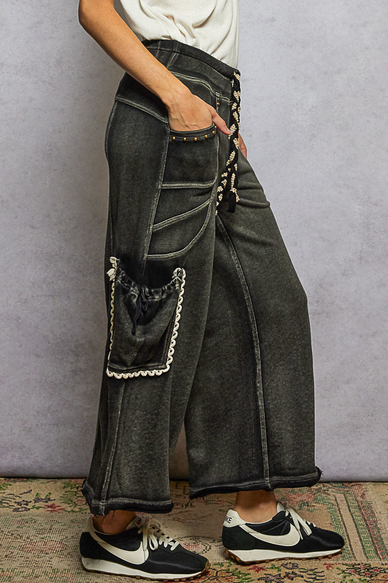 Crafted from soft French terry fabric, these pants feature a relaxed wide-leg silhouette, cargo-style side pockets with stud embellishments, and a comfortable drawstring waistband. Designed to pair perfectly with the GKJ60 Hoodie, they can be worn together as a coordinated set or styled separately for versatile everyday looks.